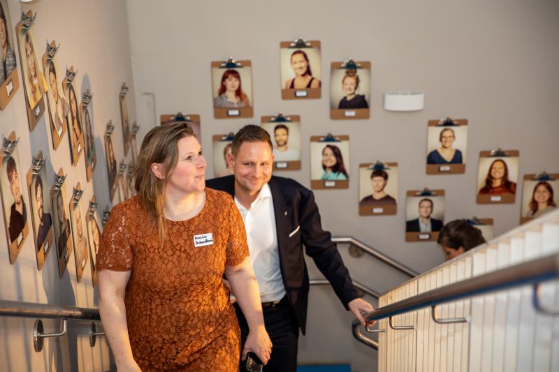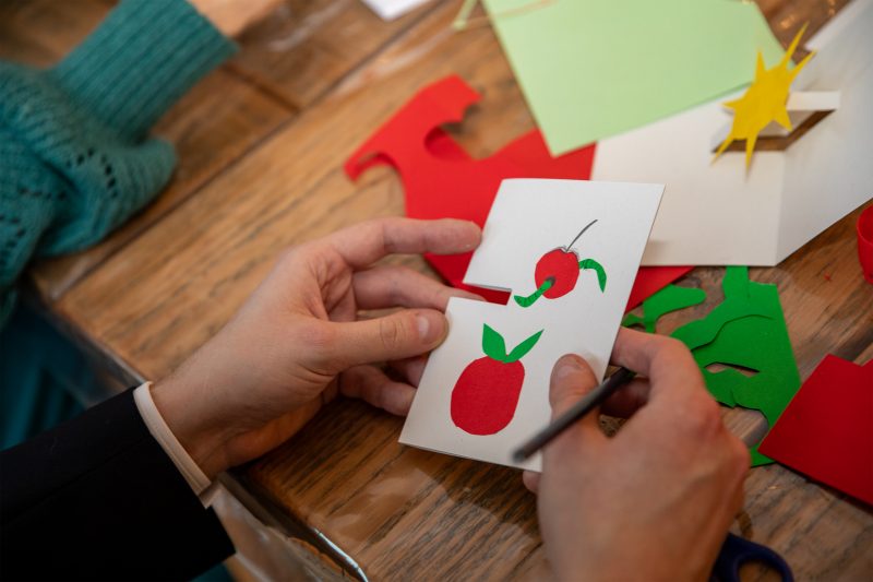 Es folgte eine Führung durch die Kita: Räume, die nicht nur gestaltet, sondern tatsächlich belebt sind: Gemütlich, mit großen Fenstern und direktem Gartenzugang, voller Materialien, einer Bühne im Saal und im Garten, Orte zum Erkunden, Spielen und sich ausprobieren. Dennis Haustein berichtete von seiner eigenen Begeisterung für kreatives Gestalten in der Kindheit, die sogar freiwilliges Aufräumen des Bastelmaterials beinhaltete.